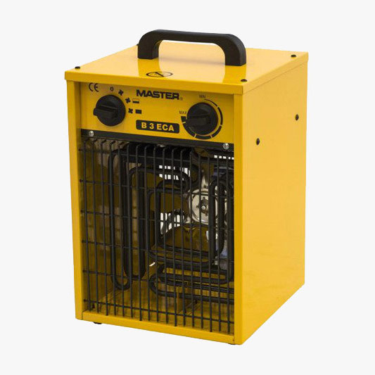 Nagrzewnica Master 3,3 EPB to mała nagrzewnica elektryczna, która ma wbudowany termostat, umożliwiający ustawienie mocy za pomocą pokrętła.